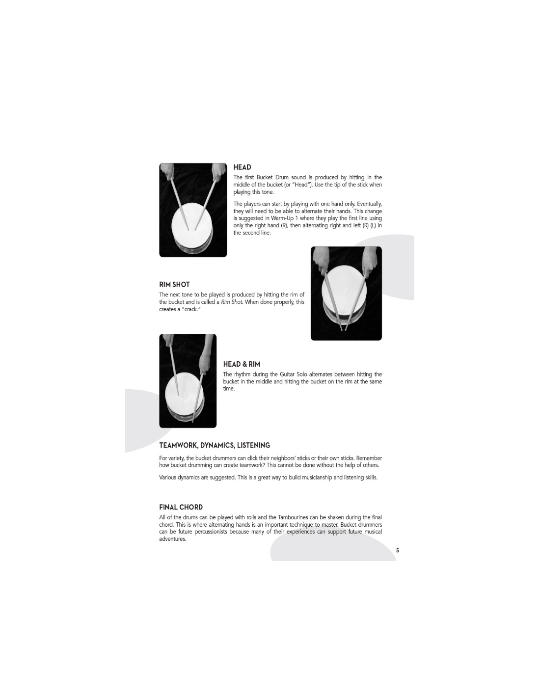 Method for introducing percussions through bucket and accesories playing. Great for schools and beginner groups.