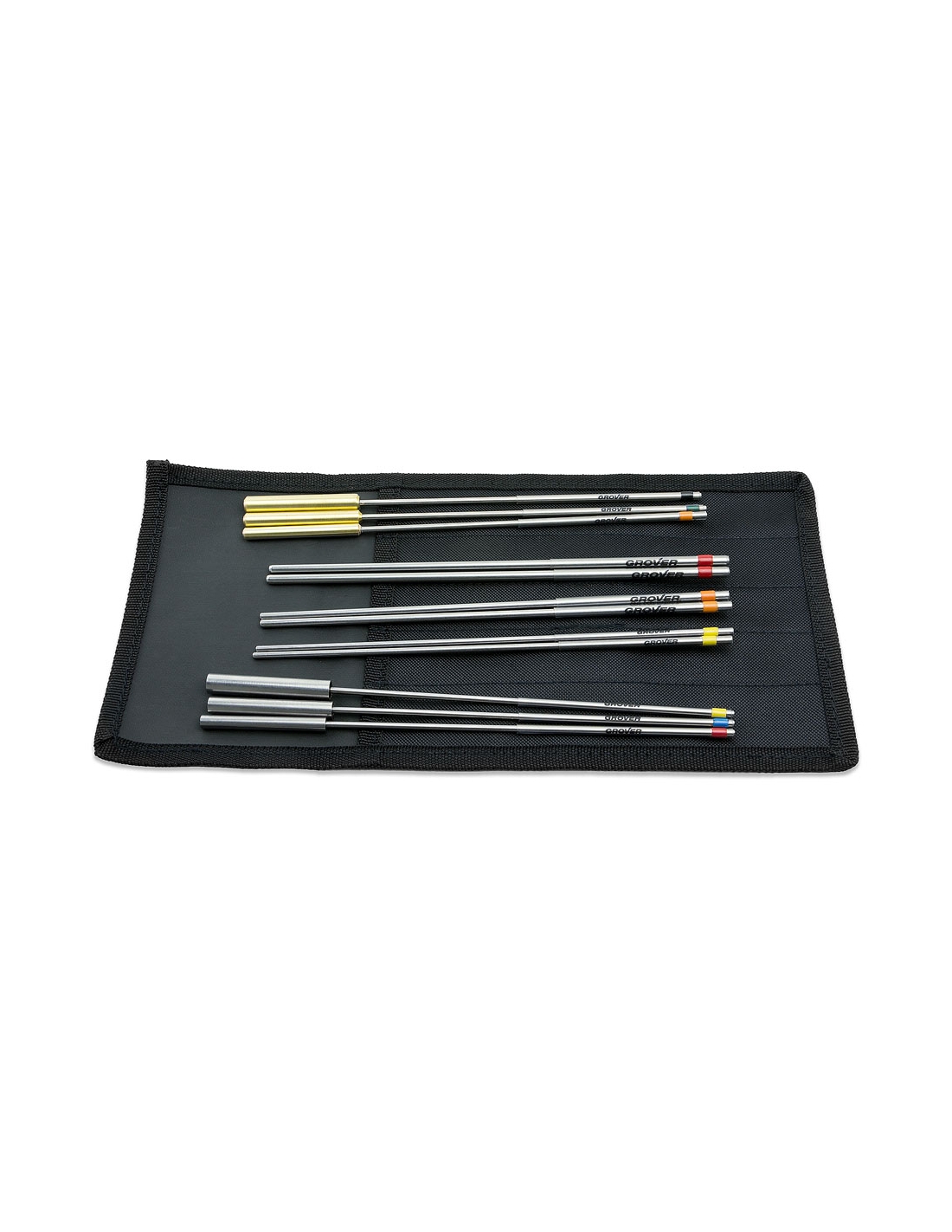 Contient 3 paires de battes droites en acier inoxydables, 3 battes acier inoxydable tubulaires et 3 battes laiton tubulaires plus lourdes.