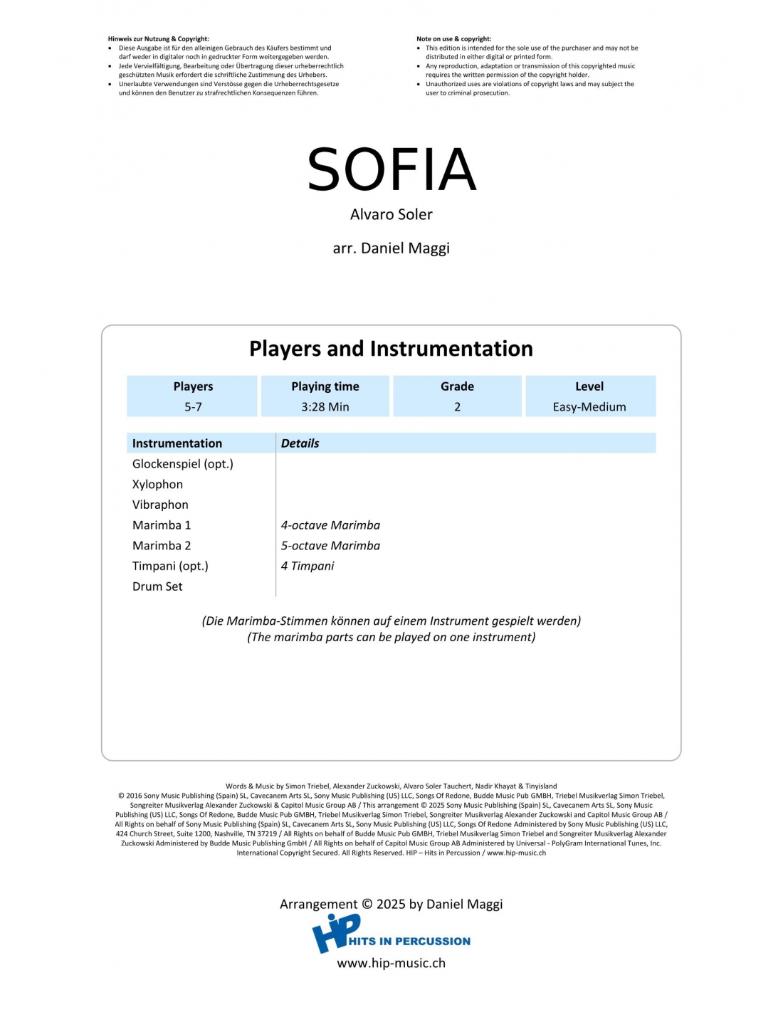 Sofia - arr. Daniel Maggi - HITS in PERCUSSION