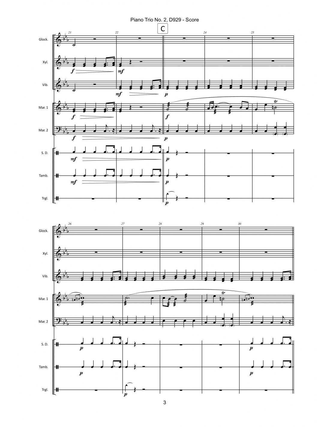 Piano Trio No. 2, D929, de Franz Schubert, arrangé par Fabrice Vernay pour HITS in PERCUSSION - Classic.