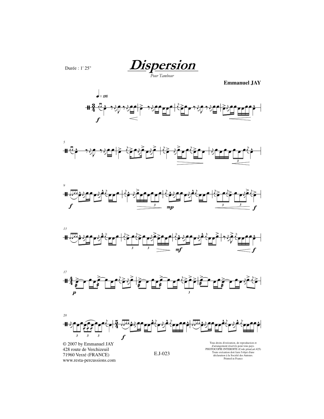 Comme son nom l’indique, tout au long de cette pièce, de forme A B A, on se disperse… entre les différentes indications de mesures, les nuances, et les divisions de temps.